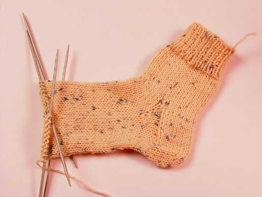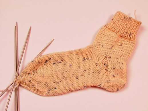 После того как на спицах окажется первоначальное количество петель, убавление прекращайте и вяжите носок до конца мизинца.