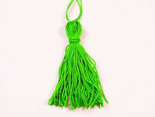 Длина кисти определяется индивидуально. Чтобы получить кисть средней длины, из плотного картона вырежьте прямоугольник. По одной из узких сторон прямоугольника проложите нить, после чего начинайте наматывать нить по длинной стороне прямоугольника. Чем больше будет намотано нити, тем объемнее получится кисть.