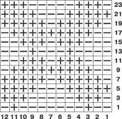 23-й ряд: * 4 лиц. п., 4 изн. п., 2 лиц. п., 5 изн. п. *, повторять от * до *;