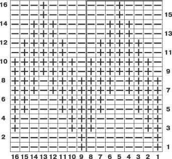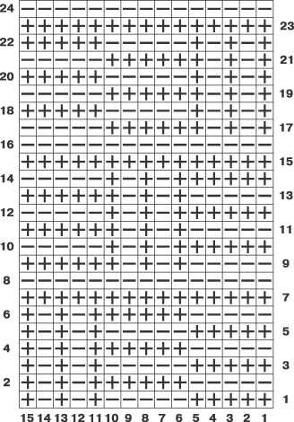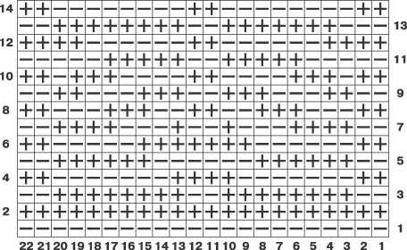 18-й, 20-й и 22-й ряды: * 5 лиц. п., 5 изн. п., 1 лиц. п., 1 изн. п., 1 лиц. п., 1 изн. п., 1 лиц. п. *, повторять от * до *.