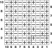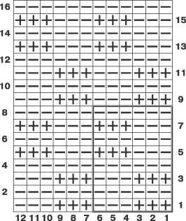 2-й, 4-й и 6-й ряды: * 1 лиц. п., 1 изн. п., 1 лиц. п., 1 изн. п., 6 лиц. п., 5 изн. п. *, повторять от * до *;