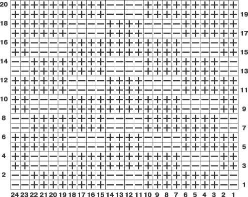 1-й ряд: * 1 лиц. скр. п., 1 изн. п., 1 лиц. п., 1 изн. п., 1 лиц. п., 1 изн. п. *, повторять от * до *;