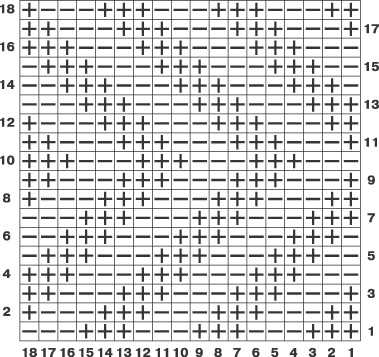 1-й, 3-й, 5-й, 7-й и 9-й ряды: * 1 лиц. скр. п., 3 изн. п., 1 лиц. скр. п., 1 изн. п., 1 лиц. п., 1 изн. п. *, повторять от * до *;