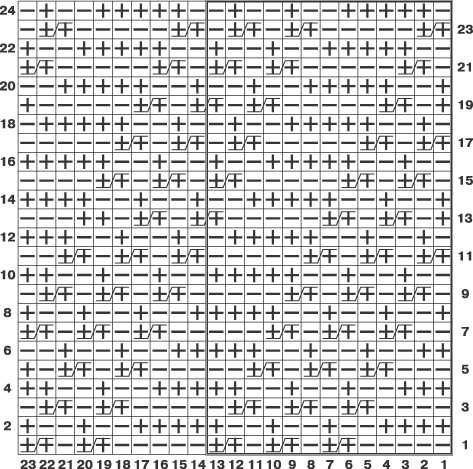 24-й ряд: * 1 изн. п., 1 лиц. п., 2 изн. п., 1 лиц. п., 2 изн. п., 5 лиц. п., 1 изн. п. *, повторять от * до *.