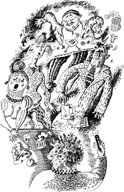 Правой рукой Пирошников сделал жест, как бы поднимающий сидящих за столами на ноги, а сам левой рукой нажал на кнопку уменьшения силы тяжести. На его глазах стройная картина поющей здравицу Подземной рады стала распадаться на куски, какие-то фигуры поплыли вверх, крутясь и переворачиваясь, кто-то полетел вбок и, ударившись о стену, отскочил. Одна из женщин пела уже под потолком, повиснув там боком — она как бы лежала на потолке, ее невесомое платье взвихрялось вокруг, но она не замечала этого, отдавшись гимну.