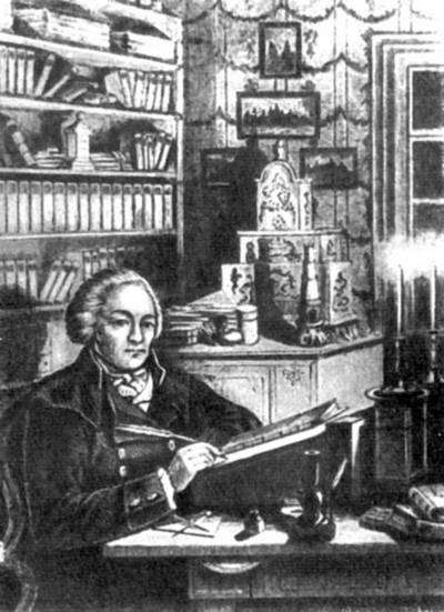 А.Т. Болотов в своем рабочем кабинете. Художник Л. Серяков