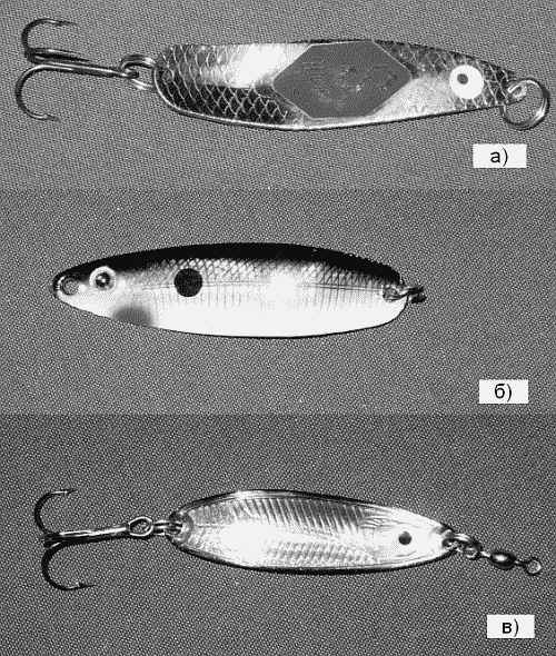 при вялом клеве хищник отдает предпочтение блеснам, обладающим индивидуальной игрой, со смещенным центром тяжести, естественно перемещающимся в нижних слоях воды (фото 30);