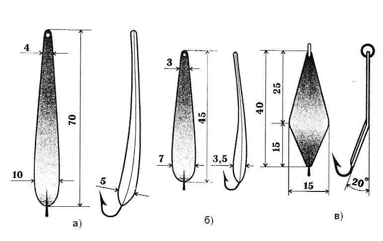 И еще один из советов, рожденных многолетней практикой рыболовов: в пасмурную погоду эффективнее блесны из белого металла, а в яркий солнечный день успешнее применение блесен тусклых или изготовленных из меди, латуни и т.д.