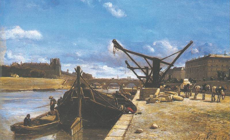 Живя в Париже, Йонгкинд писал виды наиболее знаменитых зданий и сооружений («Мост Нотр-Дам», 1862, Лувр, Париж; «Собор Парижской Богоматери», 1863, частное собрание, Париж; «Набережная канала», 1869, ГМИИ, Москва). Тогда же, используя свои наброски, выполненные во время поездки в Нормандию, он написал картину «Порт Онфлёр» (1864, частное собрание, Франция). В этих работах художник сделал попытку изобразить воздушную среду, растворяющую четкие контуры зданий и мостов. Немного позже новые живописные приемы, использованные Йонгкиндом, были взяты на вооружение будущими импрессионистами.