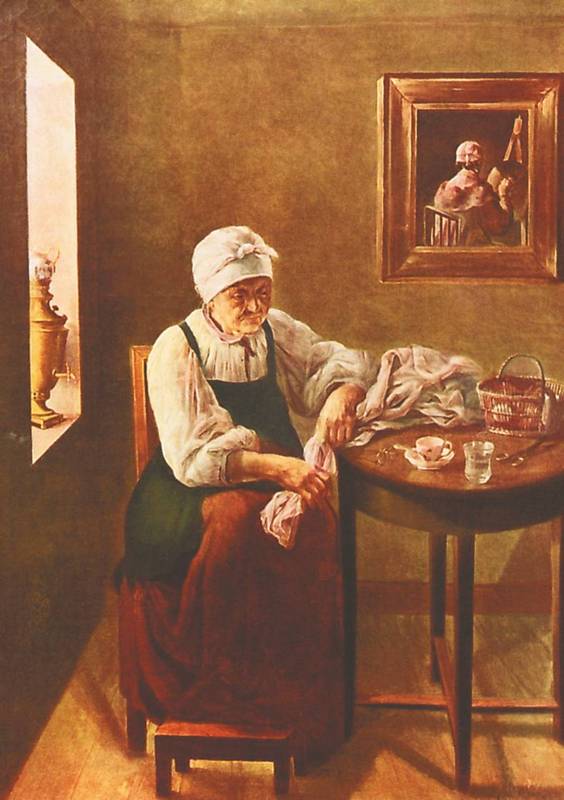 В. А. Тропинин. «За починкой белья. Портрет А. И. Тропининой», ок. 1855, собрание Н. М. Бобковой