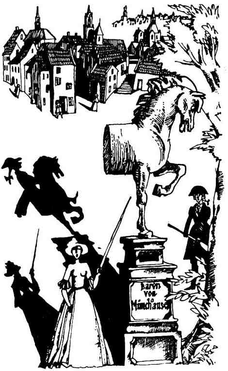 Баронесса (властно). Прекрати! Если кто и повинен в его смерти, то прежде всего — фрау Марта! Эта ханжа… Конечно, мы тоже виноваты, но нельзя же теперь всю жизнь казнить себя… Если сегодня вся Германия с благоговением повторяет имя Мюнхгаузена, то в этом прежде всего заслуга нашей семьи. Мы издали полное собрание подвигов барона, его имя присвоено гренадерскому полку… Теперь — этот памятник! Чего ж еще?!