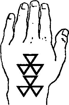 На аналогичные мысли наводят мегалиты и в других частях мира. Так, на юге Мальты высятся развалины известного матриархального комплекса Хаджр Има, построенного в форме трилистника. По расчетам археологов, его воздвигли в 2800 году до н. э., а символизирует он плодородие — одну из главных функций женской природы и естества. (От себя добавлю: с точки зрения другой археологии — археологии языка, совсем не случайным представляется созвучие таких слов, как мальтийское Има <– > иранское Йима <– > скандинавское Имир<-> русское имя) Архаичные фигуры в форме треугольников могут быть самых различных размеров и конфигураций. Таков, к примеру, сакральный мансийский орнамент, дошедший до нас из глубины веков и тысячелетий (рис. 26).