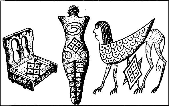 Рис. 29. Энеолитические предметы с ромбическим орнаментом. (По Б.А. Рыбакову)