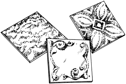 Клеевой потолок чаще всего выполняют путем наклеивания плитки, произведенной из вспененного полистирола способом термического прессования, толщиной до 8 мм. Плиты, изготовленные на основе полистирола (второе название этого материала стиропор), устойчивы к воздействию влажности и сырости, они не гниют и невосприимчивы к плесени, отличаются гибкостью и легко режутся — при необходимости плитку нужного размера можно обрезать обычным обойным ножом. Еще одно важное достоинство плиток из полистирола — это их необычайная легкость. Клеевые плитки из полистирола в наше время производятся с самоклеющейся и несамоклеющейся основой. Существует два типа таких плиток. Первый тип — это обычная белая пенополистирольная плитка. Ее лицевая поверхность может быть любой — гладкой или украшенной рельефным рисунком. На эту сторону производители плиток наносят разнообразные графические вкрапления и декоративные рельефные рисунки, которые имитируют лепнину или резьбу по дереву. Такие плитки легко можно покрасить в нужный цвет водоэмульсионной или акриловой краской (рис. 1).