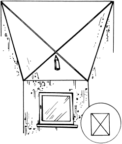 Для удобства выполнения этой части работы на потолке нужно сделать предварительную разметку в следующей последовательности. Сначала определить центр помещения. Для этого взять две достаточно прочные и длинные нити или тонкие веревки. Сначала протянуть одну длинную нить из одного угла через центр потолка в противоположный угол. Тот же прием повторить и со второй парой углов. Место пересечения двух нитей и будет центром потолка (рис. 7).