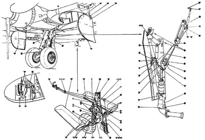 Эксплуатационные обозначения делались в разных местах обшивки самолета красной краской Flieglack 7164.23 RLM 23 Rot (предупреждающие надписи), а также черной краской Flieglack 7164.22 RLM 22 Schwarz или желтой краской Flieglack 7164.04 RLM 04 Gelb.