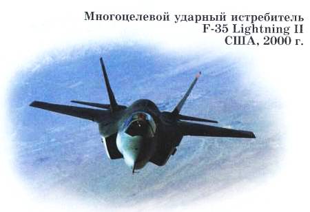 Этот истребитель пятого поколения, разработанный фирмой Lockheed Martin, планируется принять на вооружение в 3 вариантах. ВВС США получат самую простую версию — F-35A; для корпуса морской пехоты США предназначен F-35B с укороченным взлетом и вертикальной посадкой (это единственный вариант, не имеющий встроенной пушки), а ВМС США будут оснащены самолетом F-35C с увеличенной площадью крыльев и хвостового оперения, позволяющего маневрировать на небольших скоростях при полетах с авианосцев.