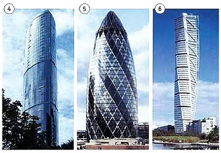 HSB Turning Torso(Мальме, Швеция) — деловое здание представляет собой девять кубиков по 5 этажей в каждом. На редкость жесткая конструкция отклоняется всего на 30 см даже при ветре 44 м/с.