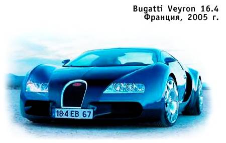 Bugatti Veyron 16.4— самый мощный, самый быстрый и самый дорогой автомобиль в мире, разрешенный к использованию на общественных дорогах. Запущенный в производство филиалом Volkswagen AG — Bugatti Automobiles S. A.S., этот автомобиль продается под легендарной маркой Bugatti, а своим именем обязан Пьеру Вейрону, выигравшему в 1939 году на Bugattiодну из престижных автогонок.