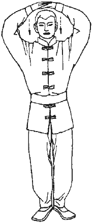 Напрячь затылок, смотреть прямо перед собой, дыхание естественное. Тренировка заключается в сведении и разведении ладоней. Когда ладони расходятся, пальцы согнуты, когда сходятся, пальцы выпрямлены, внимание на то, чтобы в точке лао-гун была ци.