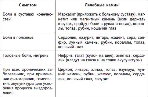 Существует достаточно много методов применения кристаллов с лечебной целью. Самый простой и удобный из них, которым может воспользоваться каждый – это так называемое контактное врачевание. Вы прикладываете к больному месту камень, название которого находите в таблице 2 (в ней дан перечень камней, применяемых при различных проявлениях остеохондроза позвоночника).