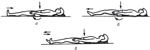 8. И.п. – лежа на спине, руки вдоль тела, под коленями – валик, под головой – подушка. Напрягите мышцы предплечья, кисти сожмите в кулаки (рис. 35, а). Расслабьтесь.
