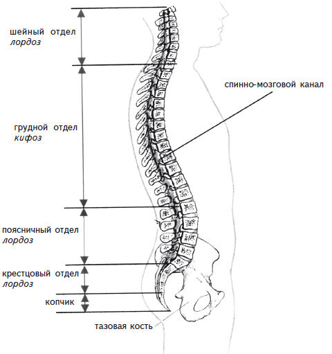 Рис. 4. Отделы позвоночника и его физиологические изгибы