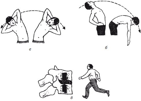 а – дает возможность позвоночнику сгибаться в стороны; б – вперед-назад; в – амортизирует толчки при ходьбе и беге