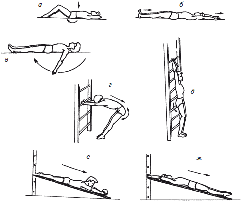Рис. 39. Упражнения для вытяжения позвоночника по оси