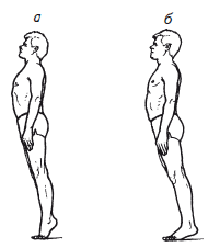 И.п. Встаньте прямо, ступни ног поставьте параллельно друг другу на ширине примерно 15 см, прямые руки опустите вдоль туловища, ладони не должны касаться бедер, спина прямая, смотрите прямо перед собой в одну точку (рис. 61, а).
