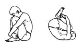 И.п. Сядьте на коврик, подтяните обе ноги к туловищу. Руками плотно обхватите ноги у лодыжек (ступни прижмите друг к другу). Если сможете, правой рукой возьмитесь за левую лодыжку, а левой рукой за запястье правой руки (рис. 62, а). Если это невозможно, то соедините крепко пальцы рук. Голову приблизьте к коленям.