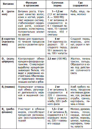 Не забывайте и о витаминах. В таблице 3 представлены те из них, которые необходимы для правильного функционирования опорно-двигательного аппарата человека.