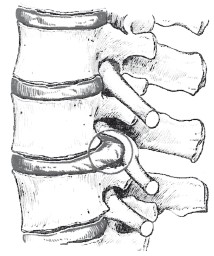 Рис. 20. Ущемленный корешок спинно-мозгового нерва при грыже межпозвонкового диска