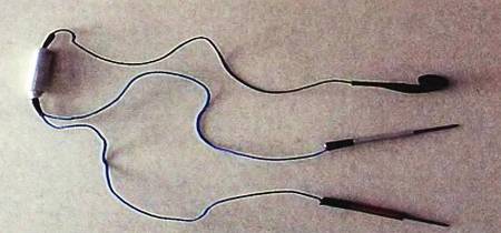 Прибор прост в устройстве и надежен в эксплуатации. Он состоит из алюминиевой и медной трубок с железными щупами. Трубки последовательно соединены с электролитическим конденсатором малой емкости (величина емкости большого значения не имеет) и наушником от слухового аппарата. При удержании трубок пальцами в результате гальванического эффекта в цепи возникает ЭДС и подзаряжает конденсатор. При соприкосновении щупов непосредственно друг с другом происходит его разряд через наушник, который при этом издает характерный щелчок.