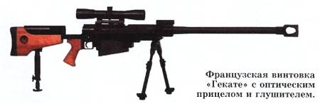 Сами винтовки, правда, получились громоздкие и тяжелые. Например, французская винтовка «Гекате», снабженная глушителем, весит около 20 кг, а установленная на треножник от пулемета — и того больше.