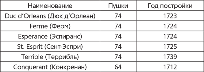 Как мы показали выше, Франция заняла в новой войне антиавстрийскую позицию, поддержав Баварию и Испанию. В Тулоне в 1741 году были вооружены и отремонтированы следующие суда.