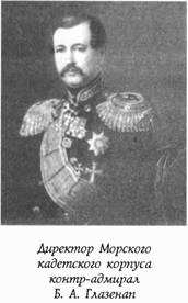 В начале царствования Александра II контр-адмирала Б.А. Глазенапа, получившего в марте 1855 года новое назначение, сменил на посту директора Морского кадетского корпуса довольно престарелый вице-адмирал А.К. Давыдов. До перевода в Морской корпус он служил сначала инспектором классов, а потом и директором Кронштадтского штурманского полуэкипажа (так называлось в прежние времена и впоследствии переименованное в Кронштадтское штурманское училище второе по своей важности учебное заведение Морского ведомства). За выдающиеся заслуги в деле подготовки флотских штурманов вице-адмирала Давыдова перевели с тем же званием директором Морского корпуса.