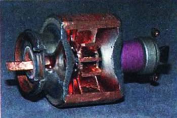 1— магнит; 2— катод; 3— электрическое поле; 4— резона тор; 5— анод; 6— магнитное поле; 7— поток электронов; 8— проводник.