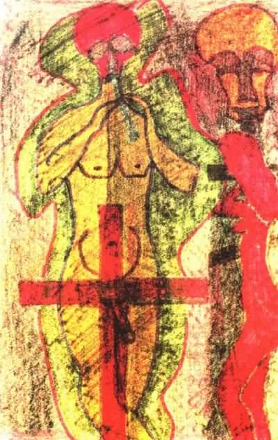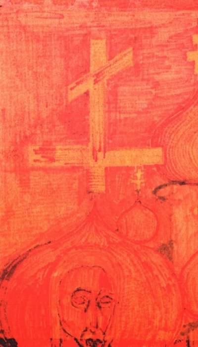 О. Даль. Автопортрет на фоне храма. 1978 г.
