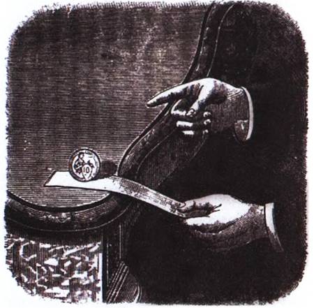Это сделать совсем нетрудно. Придерживая левой рукой конец полоски, резко ударь по ней указательным пальцем правой руки. Бумага выскользнет из-под монетки, а монетка останется на месте.