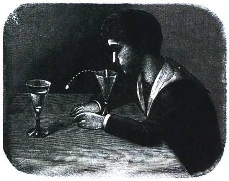 Для этого достаточно с силой подуть на край большой монеты; она повернется вокруг своего диаметра и займет вертикальное положение; в этот момент сжатый твоим дуновением воздух выбросит из стакана маленькую монетку, а затем большая монета снова займет горизонтальное положение.