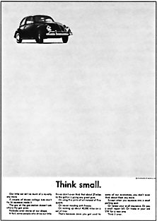 Успех ставшей классикой рекламы VW «жука» был бы невозможен, если бы агентство само не занималось кропотливым «копанием». Вот как это описывает президент агентства Уильям Бернбах: «Получив заказ, мы первым делом отправились на завод в Вольфсбурге в ФРГ. Целыми днями мы говорили с инженерами, производственниками, руководителями, рабочими на конвейере. Мы шли рядом со струей расплавленного металла, который, затвердев, постепенно превращался в двигатель, и не отходили до тех пор, пока последняя деталь не оказывалась установленной на своё место. И, наконец, мы смотрели, как за руль садится водитель, вдыхает в новорождённого „жука“ жизнь и отгоняет его с конвейера. Мы полностью погрузились в производство “фольксвагена” и знали, что должно стать темой нашей рекламы. Мы знали, чем отличается этот автомобиль. Мы знали, что нужно будет рассказать американской публике. Нам нужно было сказать: “ Это честно сделанный автомобиль”.