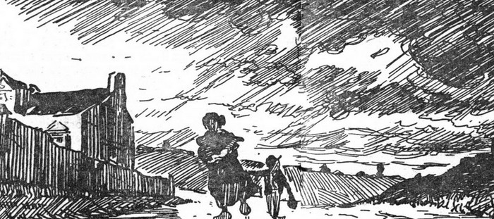 — Да идите живее, чего тащитесь! — ворчала мать и тянула за руки своих малышей, увязавших в грязи.