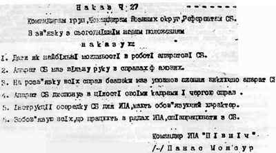 6. Приказ командира УПА «Північ» Панаса Монсура о предоставлении аппарату службы безопасности (СБ) широких возможностей для деятельности в частях УПА.