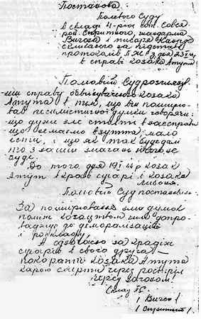 8. Постановление полевого суда ОУН-УПА ст 19.05.1944 г. по делу казака Атута. Последний за распространение писсемистических мыслей деморализующих упавцев, приговор к расстрелу.
