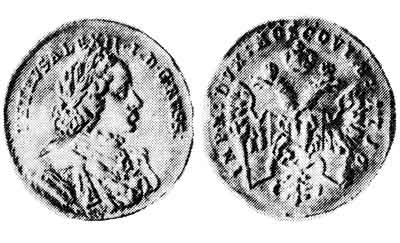 10) ИНОСТРАННЫЕ МОНЕТЫ РУССКОЙ ЧЕКАНКИ. Их печатали на Петербургском дворе без ведома соответствующих правительств [31], с. 376. Известны две такие монеты: русская копия нидерландского дуката и русская копия турецкого пиастра. И та и другая монеты — золотые [31], с. 376.