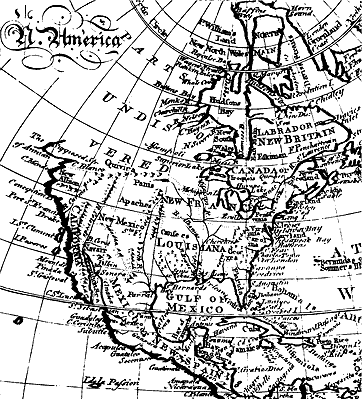 Рис. 108. Фрагмент карты Северной Америки из Британской Энциклопедии 1771 года. Видно огромное «белое пятно», покрывающее большую часть Северо-Американского континента. Взято из [43], т. 2, с. 682–683. Plate XCI