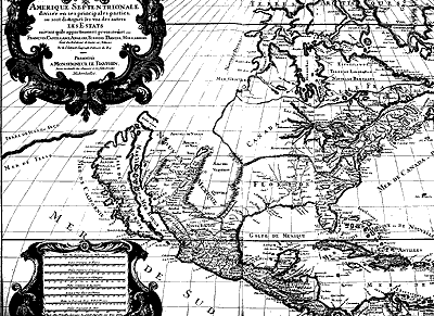 Рис. 125. Карта Северной Америки 1692 года. L'Americue Septentrionale divisee en ses principales parties, scavioir les Terras Arcticques, la Canada ou Nouvelle France, le Mexique, les Isles de Terre Neuve, de Californie et Antilles ou sont distingues les uns des autres les estats comme ils sont possedes presentempent par les Francois, Castillans, Anglois, Suedois, Dancis, et par les Estats Ceneraux des Provinces Unies ou Hollandois. N. Sanson; ed. H. Jalliot. Взято из [42], карта 18, с. 34–35