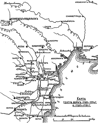 Рис. 148. Карта театра русско-турецких войн 1769–1774 и 1787–1791 годов. Возле места «рымникской» битвы 1789 года отмечен город РЫМНИК, а также речка с тем же названием
