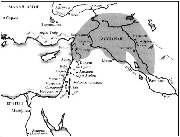 Путь повел его прямо через северную границу Израиля, который находился под управлением царя по имени Омри. Омри не занимает много места в библейском рассказе, который уделяет больше внимания его равнодушию к законам бога: все, что мы узнаем из Первой книги Царств – то, что Омри отобрал трон севера у другого претендента и был более порочным, чем любой царь до него.9 Но если выражаться в политических терминах, Омри был великим воином и строителем (он построил Самарию, новую столицу Севера), первым израильским царем, которого с почтением упомянули в надписях другой страны: надпись царя Меши на камне, найденном за рекой Иордан на территории племени, известного как моавитяне, печалится, что Омри «много лет смирял Моав».10 Он был достаточно сильным правителем, чтобы Ашшурнасирапал, который подчинил довольно много мелких государств по пути к берегу и даже требовал дань с финикийских царей Тира и Сидона, не рискнул напасть на него.